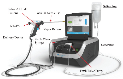 Figure 1.The Rezūm system consists of a Generator with RF power supply that is reusable and is non-sterile (does not come in contact with the patient) and the Delivery Device, a single use disposable device that is provided sterile. Courtesy of Boston Scientific Company, Inc.